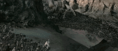 要说《指环王》最经典的场景,无疑是《双塔奇兵》里的圣盔谷之战,堪称影史上最大规模的战争。