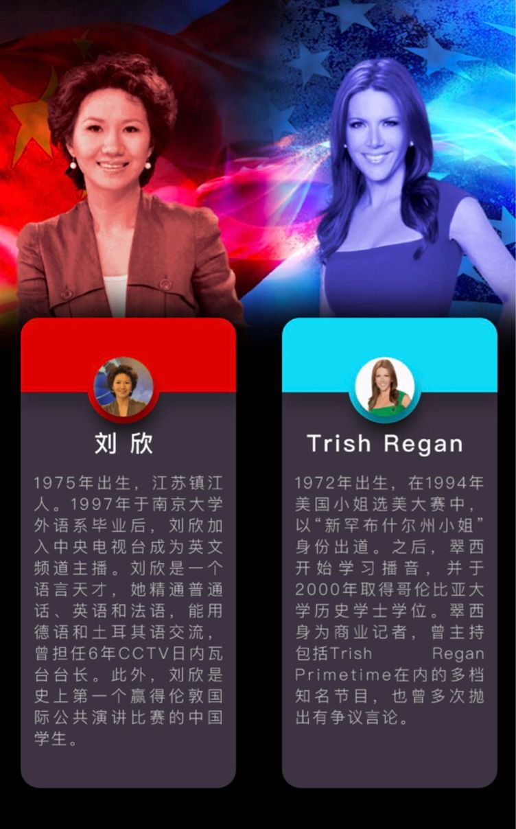 今天上午,中国国际电视台(CGTN)主播刘欣现场连线福克斯商业频道(Fox Business)主播翠西•里根 (Trish Regan),两人进行了一场针锋相对火花四射的辩论。