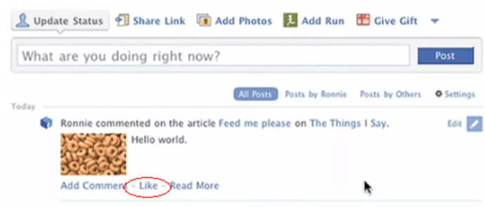 FriendFeed 团队还开发了一些后来广泛应用于科技互联网行业的服务。比如,Buchheit 开发了 RSS 源更新协议 SUP,得到了 Disqus、Reddit、YouTube 的支持。泰勒自己也是 Tornado 的主要开发者,这是一个采用 Python 语言编写,具有极强抗负载能力的开源 Web 服务器和应用框架。实际上,虽然今天泰勒已经身居高位,他还是经常自己写代码。前两年加州山火严重的时候,他还自己写过一个 iOS app,专门给自己、家人和朋友用来查看周围的空气质量地图。不过,FriendFeed 这家公司,对于今天的互联网世界最大的贡献,应该就是“发明”了喜欢 (Like) 按钮,也即我们今天熟知的点赞功能。2009年初,有人在 Facebook 公司发布的一条产品介绍视频里,包含了一个喜欢按钮。当时 Facebook 在生产环境投放的产品版本还没有上线这个功能,意味着这条视频应该是用内部测试的 Facebook 版本录制的。而当时,FriendFeed 是喜欢按钮的“发明者”。结果就是,这条视频暴露了 Facebook 已经盯上 FriendFeed 了:![]()