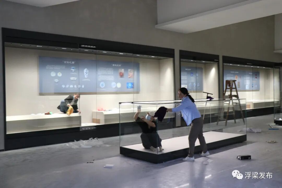 10月19日,记者来到位于景德镇陶瓷大学湘湖校区智华艺术中心三楼的“元青花”展区,看到展厅内已经整齐有序的安装好了博物馆专用玻璃展柜,几名工人正在对展柜玻璃进行保洁。在藏品室里,参与布展的工作人员正在对展出的“元青花”展品一一进行核对、分类,现场忙而有序,整个布展工作正在按照计划紧张有序的进行中。