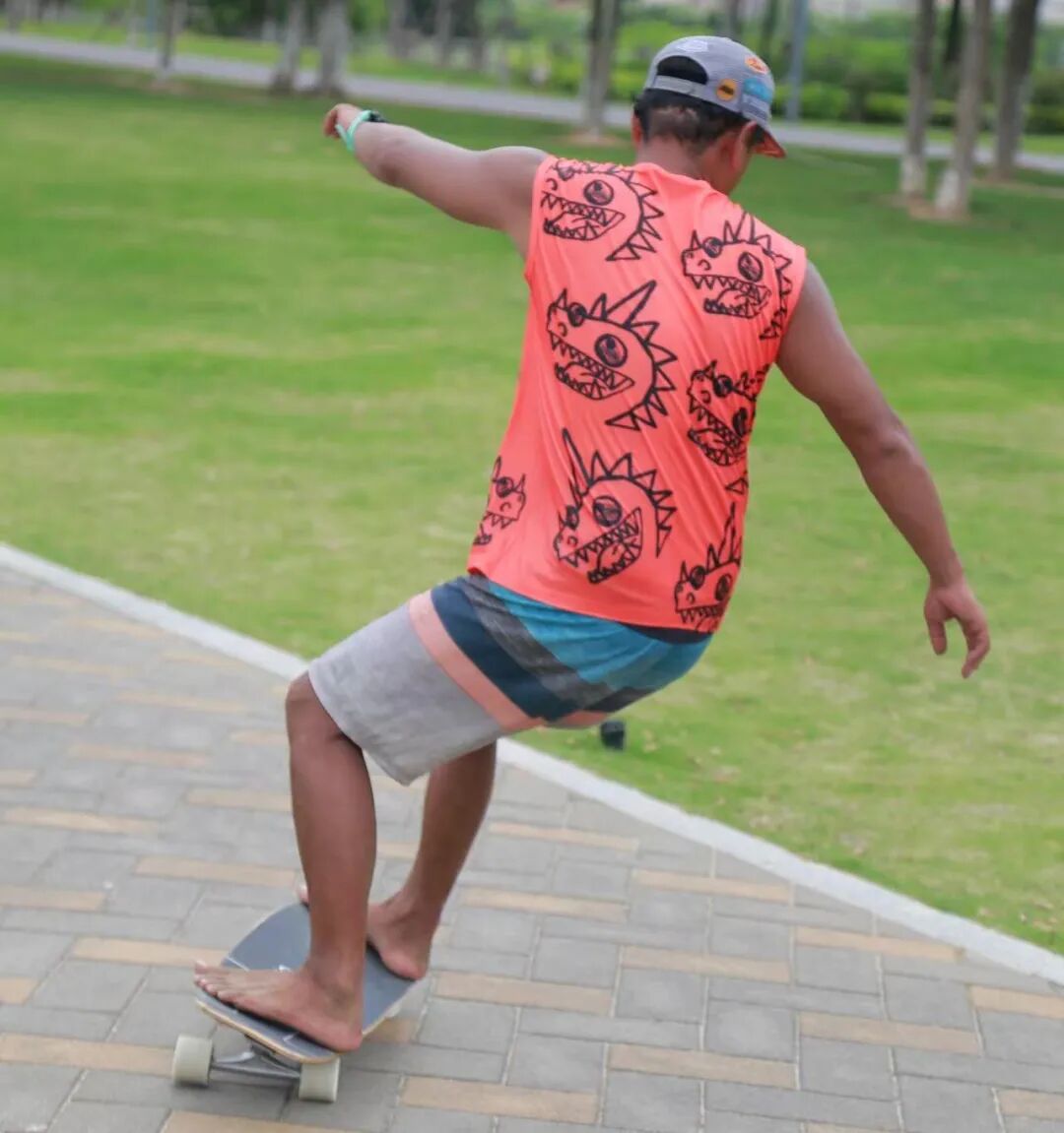 “最初(尝试陆冲)的动机是为了保持脚感加练习反脚。板类运动有很多相通性,都是动态平衡运动,也可以练习到核心。”