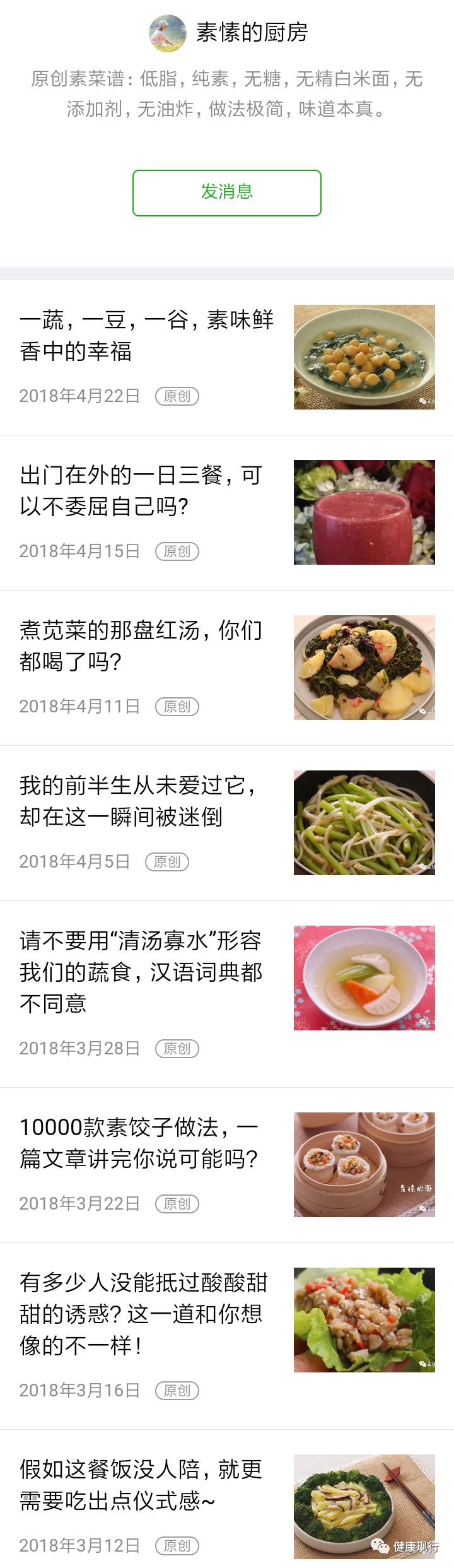 微信介绍: 原创素菜谱:低脂,纯素,无糖,无精白米面,无添加剂,无油炸,做法极简,味道本真。
