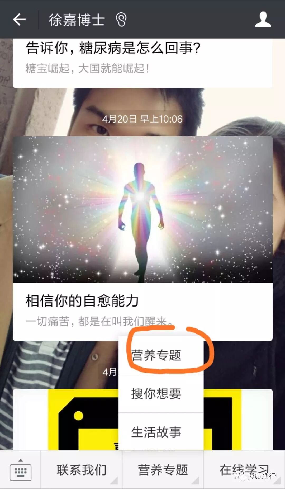 ,小编因为大学忙,所以不会经常发文章。写这篇主要是为了帮助大家学习如何用微信公众号增加健康知识。