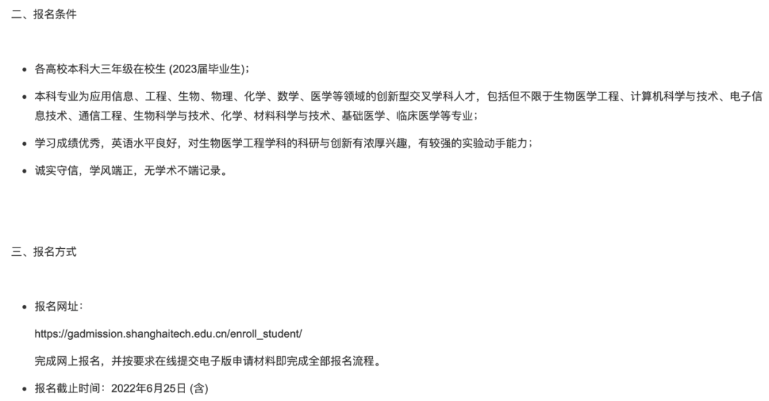 上海科技大学生物医学工程学院的夏令营开始报名啦!