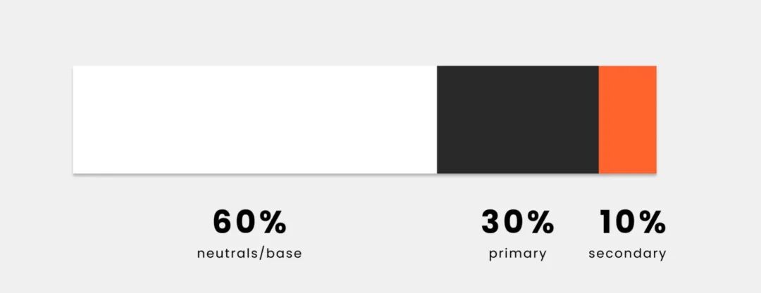 60% 用于基本色,30% 辅助色和 10% 用于 CTA 的主要高亮色