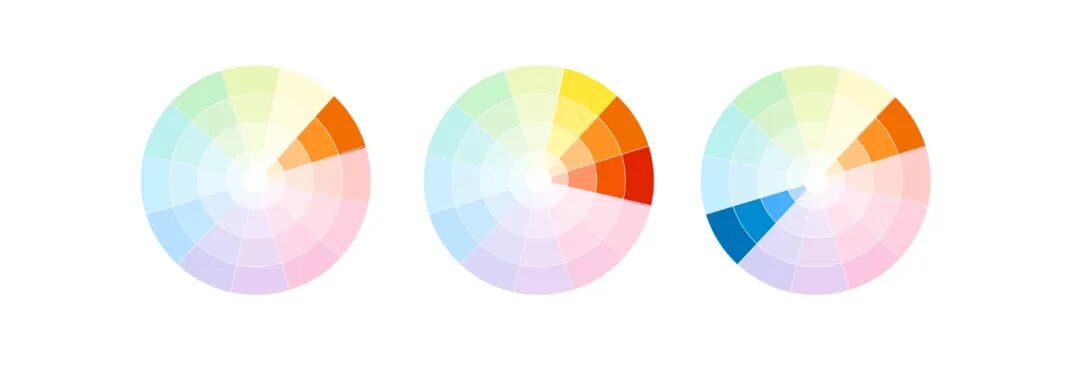 如果您正在寻找充满活力的设计效果,可以尝试使用互补色。从底色开始,然后从轮子的另一侧添加互补色。