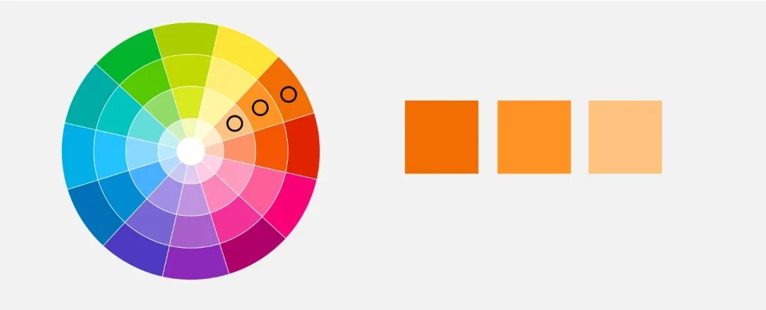 使用这种方法,我们选择彼此相邻的颜色。您可以在色轮中任意移动。近似色需要在90度角内,这种方法在整体设计不失优雅的情况下增加了一点动感。
