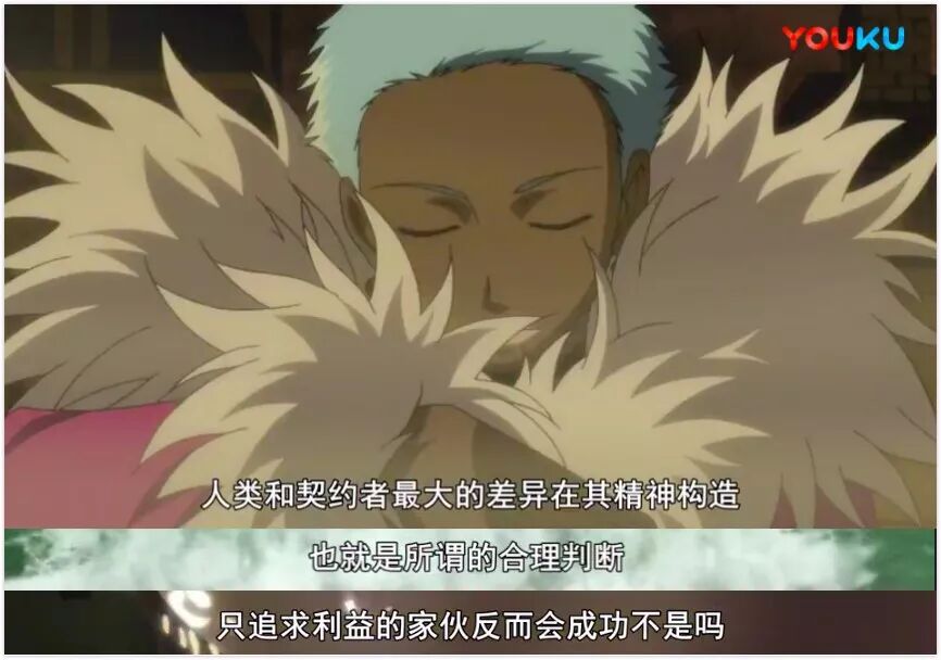 看透一切的契约者阿尔玛曾经告诉黑:“人类与契约者最大的区别在于精神构造,不被人类社会的情感以及常识束缚,做成只为了追求利益的人才能获得成功的样子。”