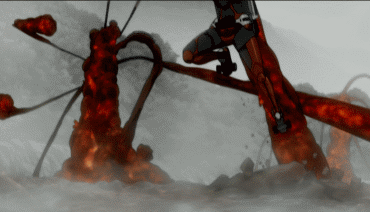 并没有想象中的血液飞溅,反而出现了人工生命才有的“碳硬化现象”。