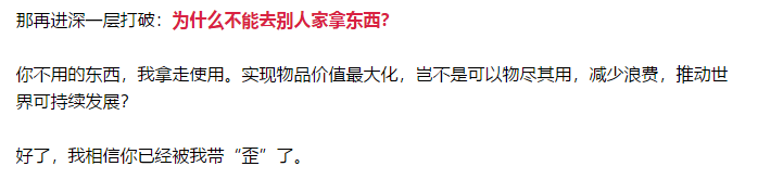 所以,你对于偷的论据和论证解释的非常正确。但你的论点是错的,偷是你的想法,不是我的,请不要断我的章,取你的意。