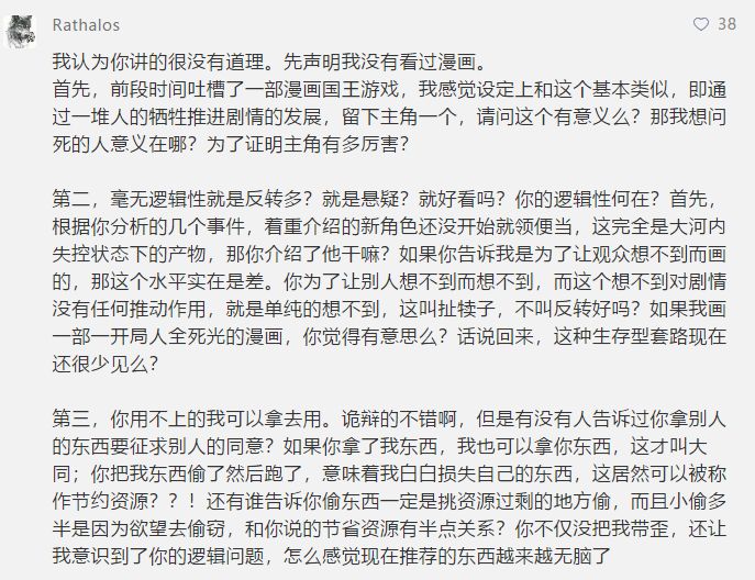 那么你为什么要用自己的固有思维——推动剧情——去评判这部漫画和我的文章呢?如果你画一部一开局都死光的漫画,只要剧情编排合理有逻辑,不套路化程序化,我同样会觉得很有意思。