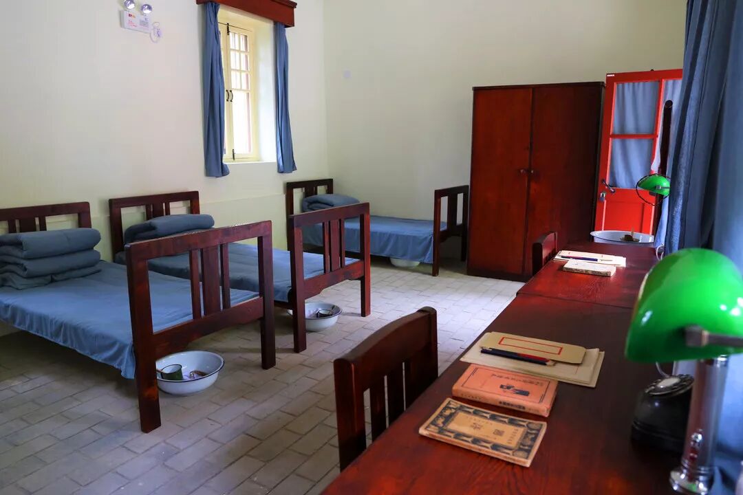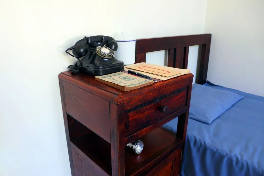 会客厅东侧是办公室,宽大的办公桌上摆放着老式电话、笔墨等办公用品。办公室里侧有一个小间,是小餐厅。