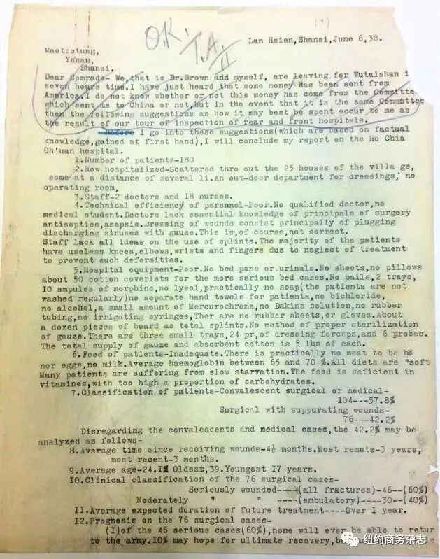 今年十一月十二日是白求恩为中国抗战牺牲80周年纪念日。白求恩是伟大的国际主义战士。他是一位名医、皇家医学学会会员和美国胸外科学会理事。当年,白求恩享有着极高的荣誉、社会地位和优渥的待遇。本在远离战争的北美过着养尊处优的生活,可是他为什么要冒死在那个中华民族最危难的时刻去救助中国人民呢?这是今天每个有良知的中国人都应该思考的问题。 前年秋天,笔者在纽约一所著名大学珍本书库发现了大批中共领袖包括毛泽东朱德周恩来等在抗战时寄到美国的书信原件。我对这180余箱文件进行梳理审读时,居然发现有大量白求恩的亲笔书信!这引起了我极大的兴趣。 白求恩,这相隔遥远的传奇人物,就这样逶迤地、满面硝烟风尘地向我走来。——如果不是亲自触摸到这些信件,我绝对不能相信白求恩在那繁忙的工作、战火纷飞的日日夜夜里能够写出这样海量的书信、报告、通讯、日记、讲演和书稿讲义。而且,通过这些书信的阅读和其后的史料追踪,我也发现了很多我童年时所读的史实误置。![]()