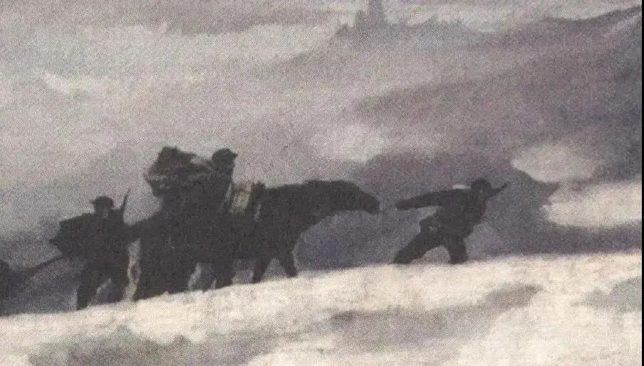 这件作品应该说是革命历史题材创作中的一幅经典,作品左侧的云端好像是凝固在天空中,和右边的暴风雪在构图上正好起到一个回应的作用。