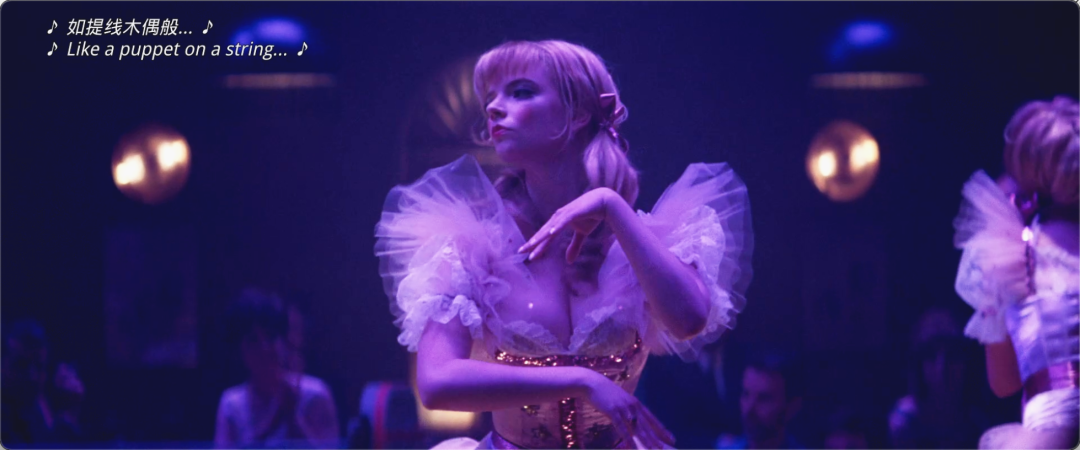 憧憬舞台灯光的珊迪最终没能如愿做到大姐大的位置,她自始至终只是一个可怜的陪衬,并不断在酒精和不怀好意的交际中沉沦,从而一步步沦为经纪人的玩物。选曲方面,向来钟情于老调的莱特特意挑选了表现傀儡主题的舞曲,来进一步强调珊迪在资本和权势前的地位与命运。