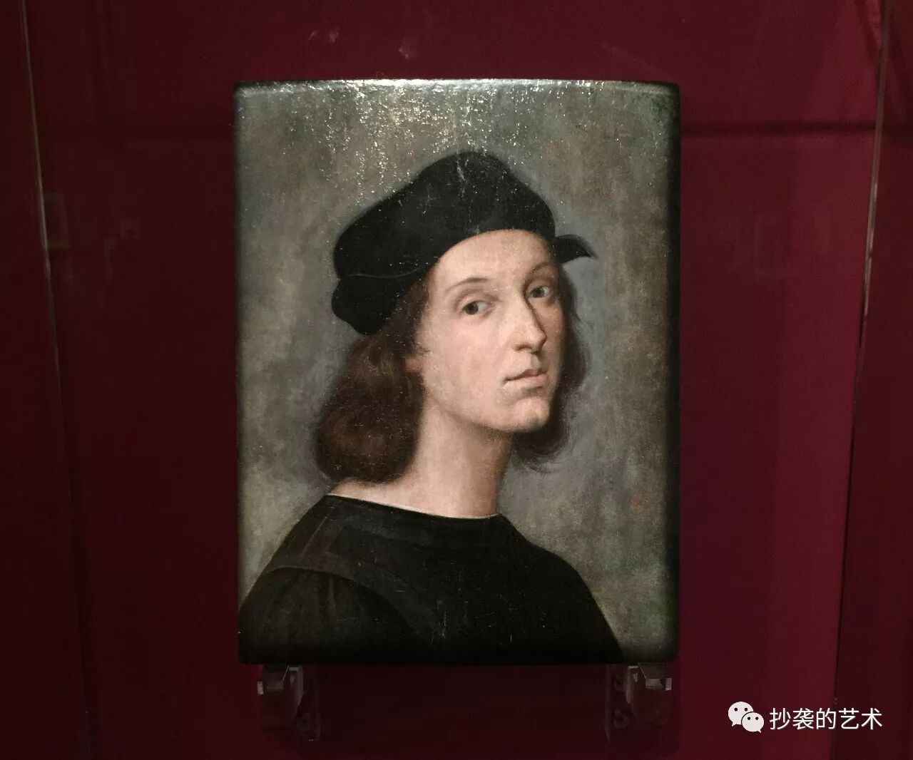 好了,我们先不管它在哪个馆,有在佛罗伦萨的小伙伴回头帮我看看它给我个准信。但就是这张画像都被定位为Presumed portrait of Raphael【据称为拉斐尔自画像】,维基百科里说:这个拉斐尔的肖像可能是“所有人都同意的一个肖像的后期适应”:在雅典的学校,由瓦萨里证明。所以称这张为:推测的拉斐尔肖像。