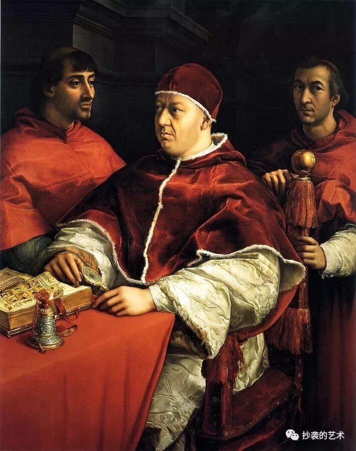 Leone X tra i cardinali Giulio de' Medici e Luigi de' Rossi
