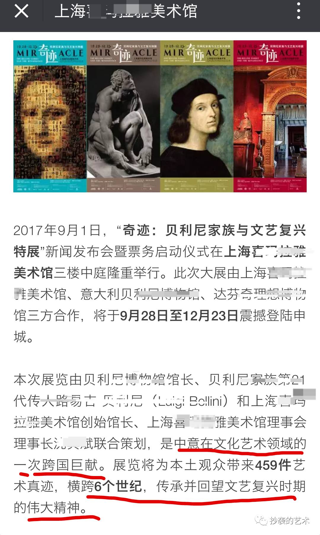截图来源上海某美术馆馆官方微信推送