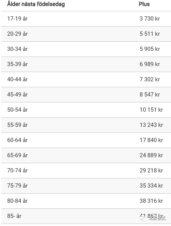 最贵的(不要求有转诊单就可以直接预约专科医生)。对于一个30多岁的人,一个月比Folksam贵一点,大概500多克朗的花费(表格中的是一年的价格),但没有需要自己承担的费用。