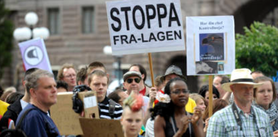 当关于FRA法的提议在2007年出现以后,瑞典民众,尤其是网民都愤怒了。瑞典多地爆发了大规模的游行抗议,无数人走上街头游行,一次又一次的收集签名,然而似乎并没有什么卵用。这条被民众激烈反对的法律最后还是通过了。法律通过之后,瑞典议会的电子邮件系统几乎被愤怒的民众挤爆,投了赞成票的议员们每天都能收到几十万封电子邮件,告诉他们做了错误的决定。然而传说当时投了赞成票的议员后来都得到了各种奖励,而投了反对票的国会议员后来却遭到了来自自己党内的迫害,一些人的政坛生涯就此终结。