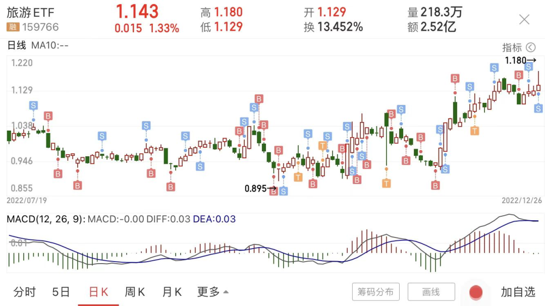 买点位置很好,卖的位置也很不错,复苏板块的旅游ETF今天在周末各地区逐渐复苏的背景下,最高冲到4.52%,但收盘只有1.33%。这种冲高回落,“套人”的感觉很明显,不过网格是在回落的那一下就卖出了,卖的是当日高点位置