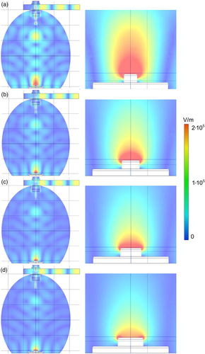 在本工作中,研究团队重新设计了反应器装置,其中的可拆卸组件可以实现对谐振器腔内电场强度的调整。在此基础上,团队使用中型基板支架进行了相应的CVD生长实验,对模拟结果进行验证并获得光谱数据。作者使用COMSOL软件对不同类型的基板支架进行了电场强度分布模拟,发现随着基板支架直径的增加,电场强度最大值下降,这种影响也表明微波功率密度的降低。其次,作者研究了不同电场强度下等离子体特性的变化,光学发射光谱数据显示了气体温度、自由基物种和跃迁相关的信息。最后,团队对合成的金刚石进行了粗糙度、XRD、XRT、内应力分布等分析,全面评估了不同条件对金刚石生长的影响。
