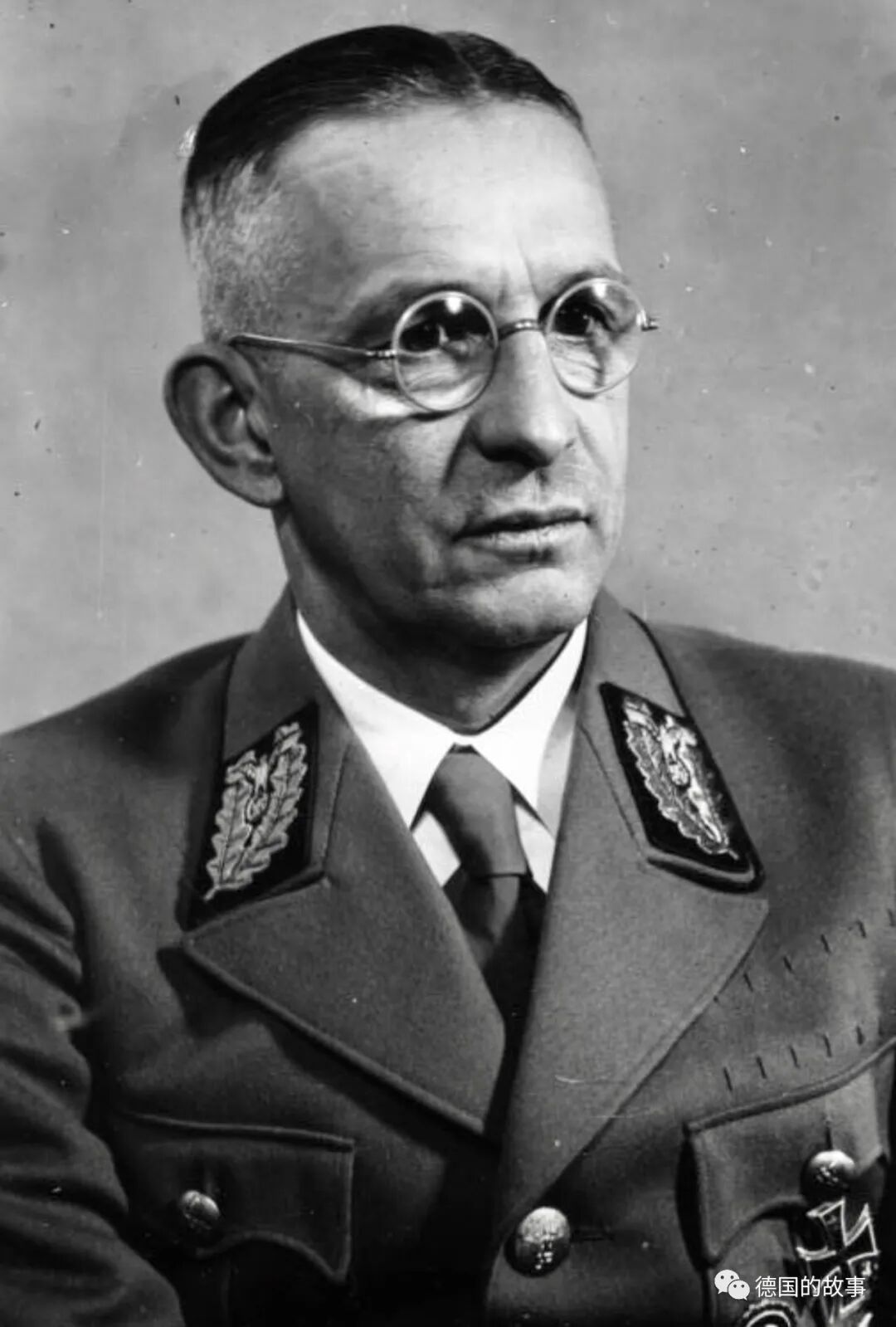 万湖会议召集人和主持者,党卫军上将(SS-Obergruppenführer,相对应建制军衔为上将),帝国保安总部首脑,帝国波西米亚与摩拉维亚保护国首脑。海德里希原为帝国海军军官,因为长相出挑,还会拉小提琴玩击剑之类的撩妹手工活,招蜂惹蝶,欲望驱使之下同时向两女许诺嫁娶之事,结果事不机密,女方闹到单位,被海军“不名誉”除名。悲愤莫名的海德里希随即投向当时还处于创建阶段的党卫军,以其出色的组织能力得到希姆莱赏识,上蹿神速,在帝国强力机构系统中成为一人(希姆莱)之下,万人之上的“王储”。