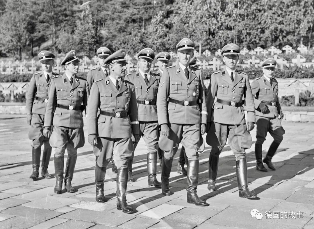 德军占领挪威后,缪勒(前排左)陪同海德里希(前排中)参观奥地利一处战争阵亡者公墓