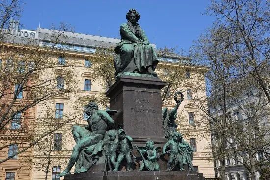 位于维也纳贝多芬广场的贝多芬青铜雕像