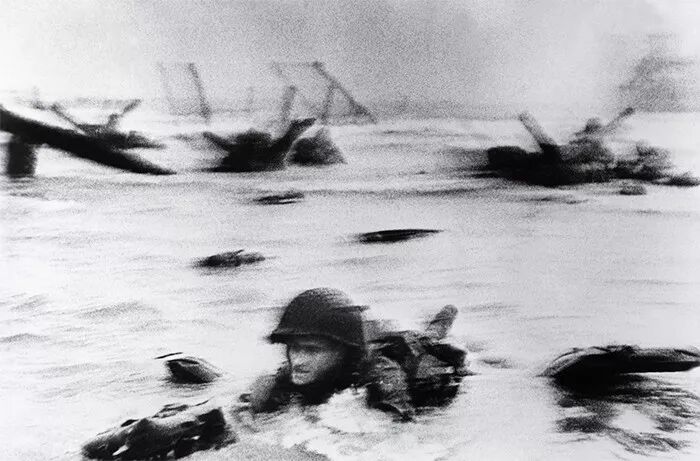 这张照片由传奇摄影师罗伯特·卡帕拍摄,时间是 1944 年 6 月 6 日——盟军登陆诺曼底。照片的主角是一名 22 岁二等兵 Huston Riley,当时已经被子弹打得伤痕累累。