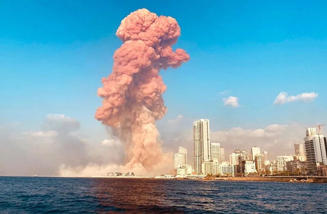△当地时间8月4日,黎巴嫩贝鲁特港发生巨大爆炸,现场升起蘑菇云。这一事故造成重大人员伤亡和财产损失,引发大规模示威游行,时任总理哈桑·迪亚卜等官员辞职。图片:人民视觉