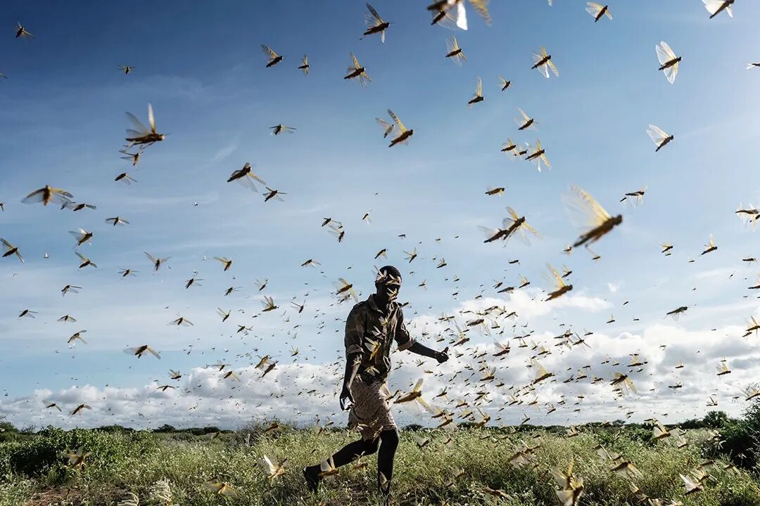 △当地时间5月21日,肯尼亚桑布鲁县,一名男子驱赶一群沙漠蝗虫。肯尼亚、索马里和埃塞俄比亚等多国遭蝗虫肆虐。摄影师:Fredrik Lerneryd
