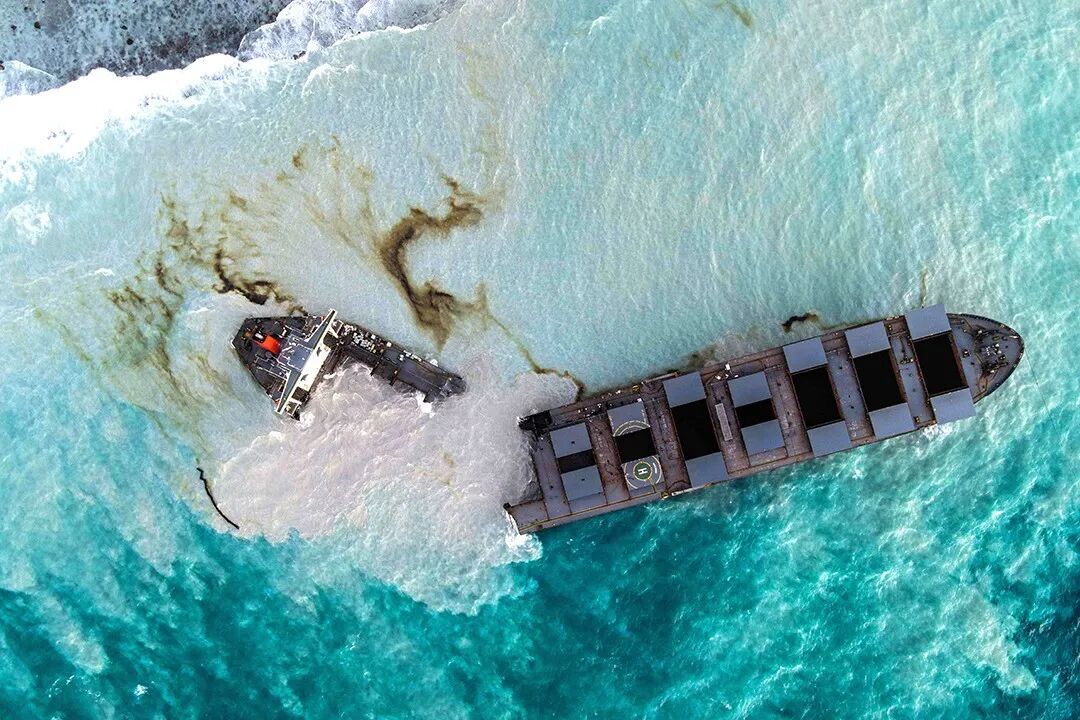 △当地时间8月16日,印度洋岛国毛里求斯海域,日本企业旗下搁浅货轮“若潮号”船身已断裂。7月25日,这艘货轮触礁搁浅,大量漏油污染环境。图片:人民视觉
