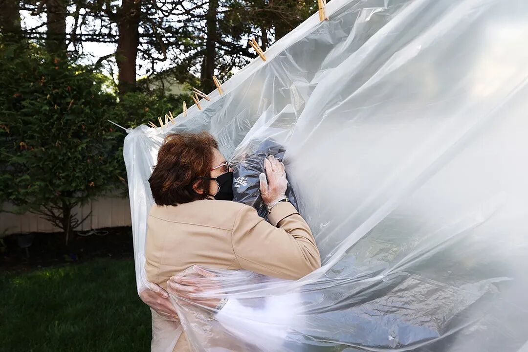 △当地时间5月24日,美国纽约州,一对母女隔着塑料薄膜相拥。这是自疫情封锁以来,她们首次有身体接触。摄影师:Al Bello