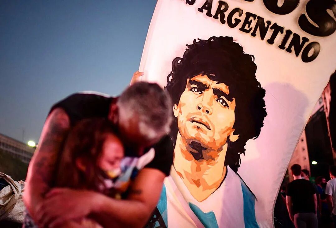 △当地时间11月25日,阿根廷球王马拉多纳去世,终年60岁。布宜诺斯艾利斯球迷走上街头悲痛悼念。摄影师:Ronaldo Schemidt