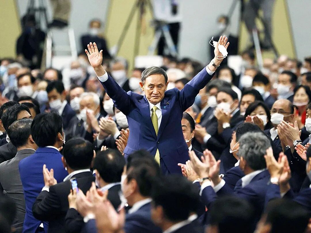△当地时间9月14日,日本东京,菅义伟在自民党新任总裁选举中以377票击败另外两位候选人,成为日本新首相。图片:Kyodo News