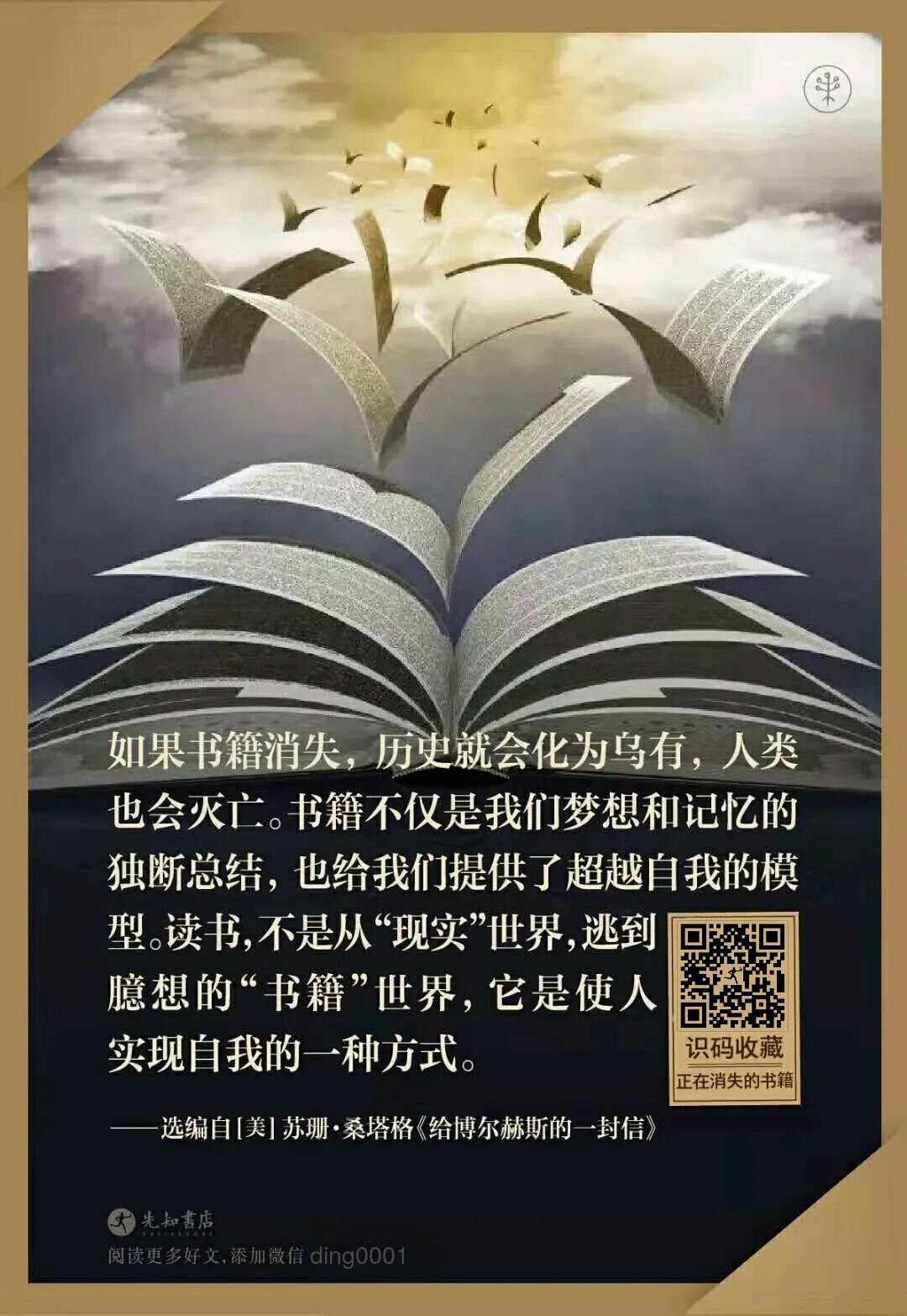 “作家们的作家”是人们对博尔赫斯的至高评价,受他影响的作家不计其数。每个作家在走上文学写作这条路后,回头审视自己过来的路,总会看到一盏属于博尔赫斯的明灯。为此,先知书店整理了博尔赫斯的思想金句,分享给大家:2、英雄们就这样战斗,可敬的心胸无畏无惧,手中的钢剑凌厉无比,只求杀死对手或者沙场捐躯。4、人们狂妄而又贫乏的词,诸如整体世界宇宙等等都是这个词的影子或表象。5、都说我是个大作家。我对这个奇怪的想法心存感激,可是却不认同它。将来会有些智者轻松把它驳倒,给我安上一个骗子或者粗制滥造的标签或者两个同时安上。6、由灰尘和时间制成的人类,比仅仅由时间制成的轻浮调子还要短寿。7、黑夜是一片比世界更大的云,是一个满身是眼的妖魔。9、在现实中,在历史上,每次当一个人在面临抉择时必然选择一个然后放弃其他几个;而这并不在像那个属于希望和遗忘的,艺术上有着多种可能性的时间概念中。12、他想起人们做的梦是属于上帝的,迈蒙尼德斯说过,梦中的话语如果清晰可辨,并且看不见说话的人,那些话就是神圣的。13、大学应该支持我们去钻研古人和别人的东西。如果只是支持自己和当代的东西,那么大学就没用了,因为它只是在拓展媒体已经担负起的功能而已。14、假如你像个男子汉那样战斗,你就不会像条狗似的被人绞死。15、你会反驳说,现实不一定非有趣不可。我的答复是,现实可以不承担有趣的义务,但不能不让人作出假设。16、过去是构成时间的物质,因此时间很快就变成过去。17、我不属于任何人,我属于全世界,你们在进来之前已身在其中,你们在离去之后仍身在其中。18、我们往往为小说人物的不幸一掬同情之泪,结果我们自己的不幸更让人伤心。19、因为时间永远分岔,通向无数的未来。在将来的某个时刻,我可能成为您的敌人。20、我就是那样做的,我把自己当成已经死去的人,冷眼观看那一天,也许是最后一天的逝去和夜晚的降临。21、我们轻易地接受了现实,也许因为我们直觉感到什么都不是真实的。23、我如何对我的日子说:我住在你那里,却未曾抚摸你,我周游了你的疆域,却未曾见过你。24、任何一种命运,再长再复杂都好,事实上都有那么一个时候:在这时一个人永久地知道了他是谁。25、我们管千百个变化不定的原因的无限运作叫做命运。26、有些人无法想象一个没有鸟的世界;有些人无法想象一个没有水的世界;而对我来说,我无法去想象一个没有书的世界。27、你的肉体只是时光,不停流逝的时光你不过是每一个孤独的瞬息。28、拂晓时我仿佛听见一阵喧嚣,那是离去的人群;他们曾经爱我,又忘了我;空间时间和博尔赫斯已把我抛弃。29、严重事件是超越时间范畴的,可能因为过去和将来的联系给砍断了,也可能因为组成事件的各个部分之间似乎没有关联。![]()