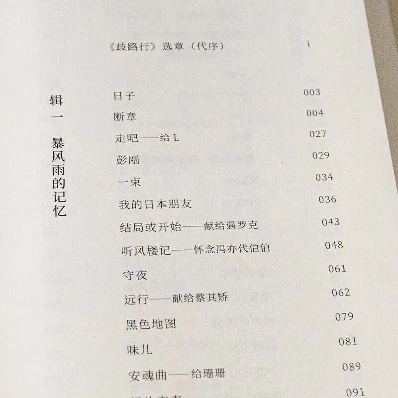 ◎ 收录北岛新诗《歧路行》选章,简体中文世界首次出版《歧路行》节选:"歧路行,我永远在迷路。我个人的命运和当代史,有一种类似对话的关系。我经历过这些年,见过的诗人们、朋友们,还包括一些小人物。我觉得对于这么一段历史,我一定要有个交代。"在北岛新诗《歧路行》中,我们能看到他一如往昔的铿锵之音,而纷繁的意象、子弹穿梭般密集的排比更显雄浑气象。《歧路行》共三十四章,写作历时十一年,而追问还在继续。