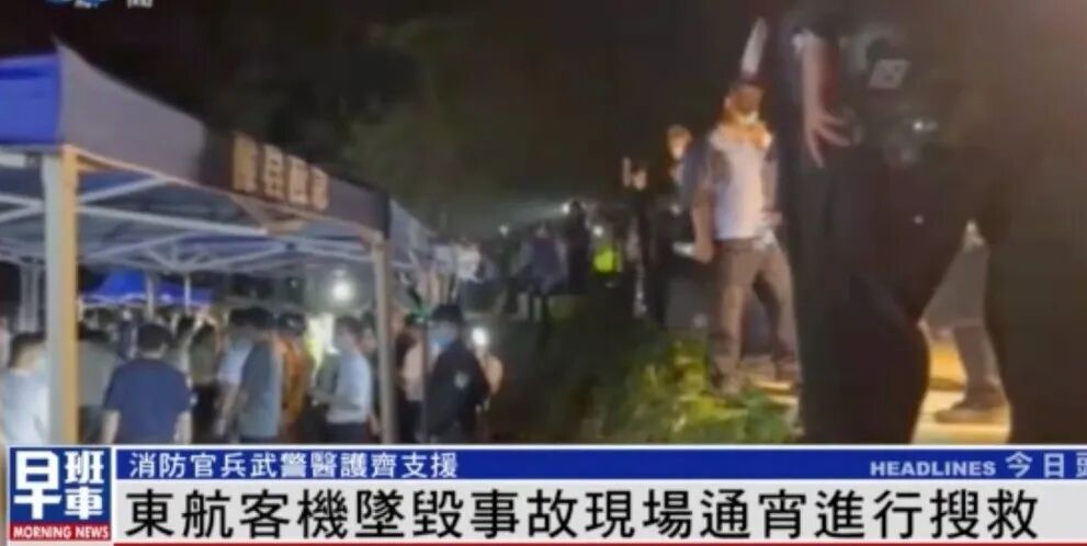 东航客机坠毁事故发生后,搜救人员在现场设立搜救前线临时指挥部,并展开彻夜救援。