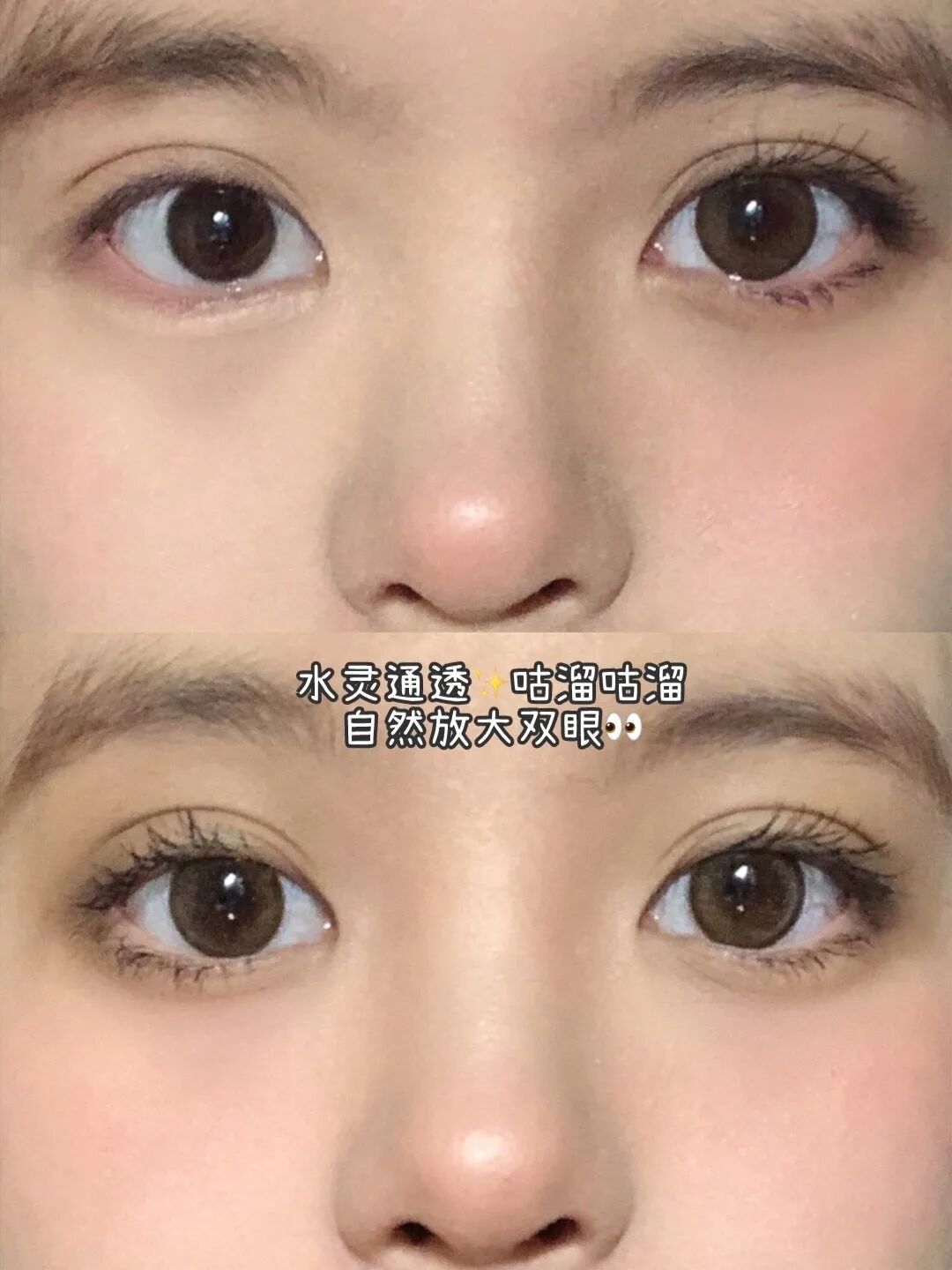 同时好看的犬系长相,眼睛都是很水汪汪的,近视眼或者眼睛不怎么有神的姐妹可以选个有点扩瞳的锁边美瞳。