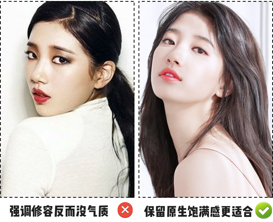 所以放到犬系姐妹们身上也是同样的道理~拼命加强轮廓感会显老,不如保持原生态的胶原蛋白的饱满脸~