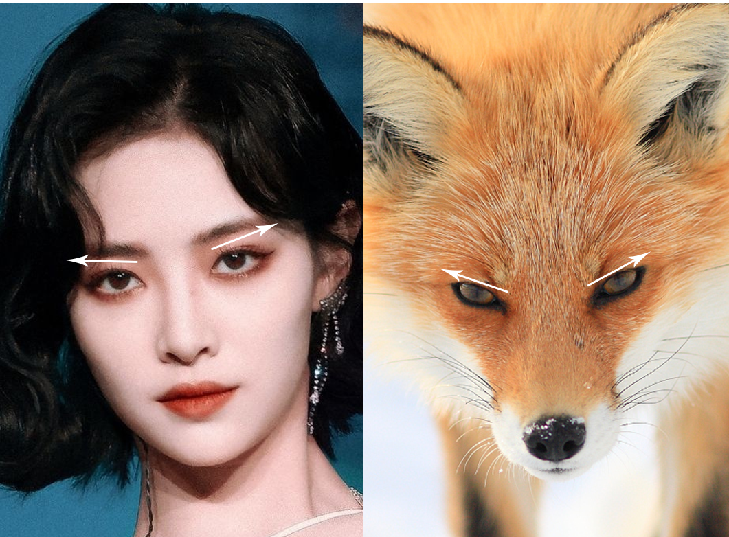 首先就是眼睛。和猫系眼有些相似,不过狐狸眼会更偏窄长,上扬的不仅仅是眼尾,而是整个眼睛。
