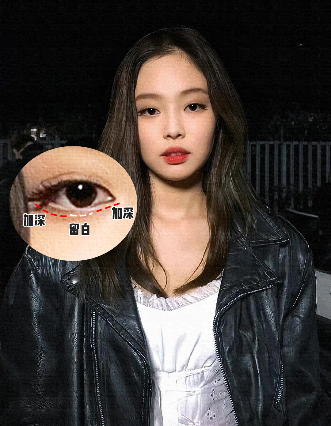 所以妆容上就不要铺太多色块,重点在于勾勒线条,尤其是眼线不要全包,眼珠下方一定要留白👇