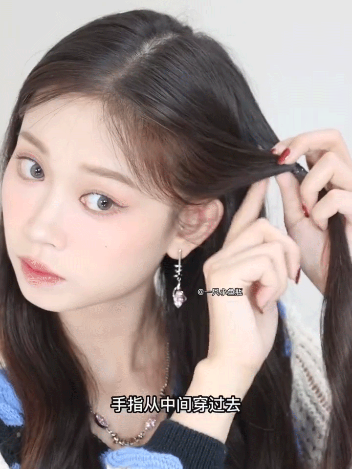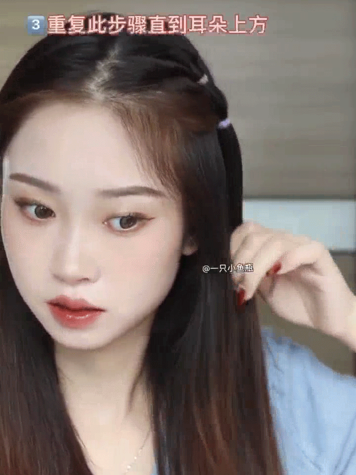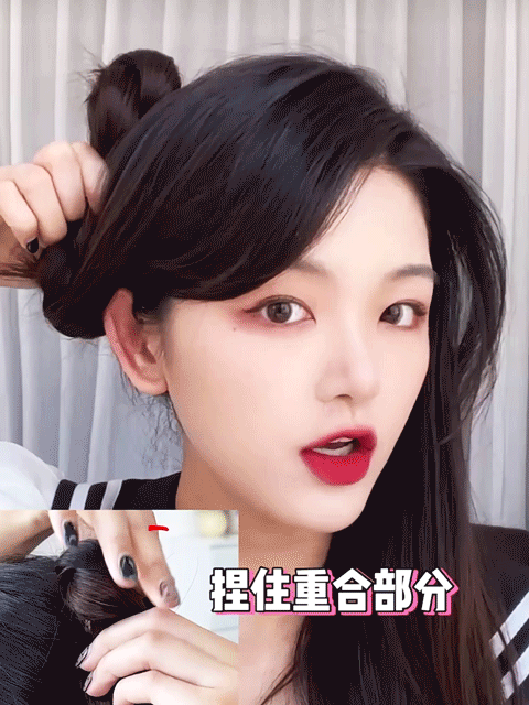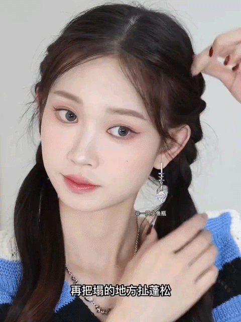 看到她发型的第一眼我就去搜教程,发现超简单,一分钟就能get甜系双马尾👇