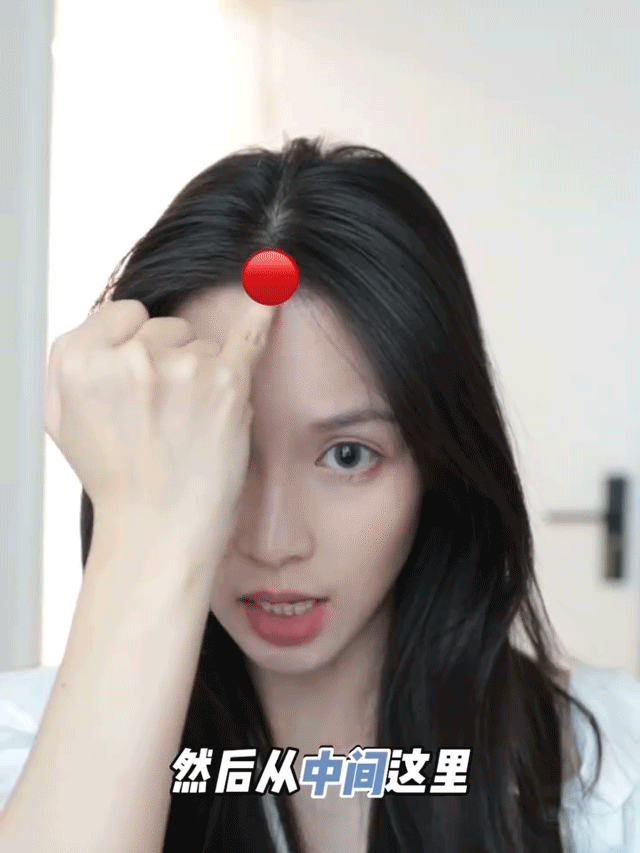 Step1:先把耳朵前面笨的头发分出来,然后眉毛到头顶部分的头发向后分。