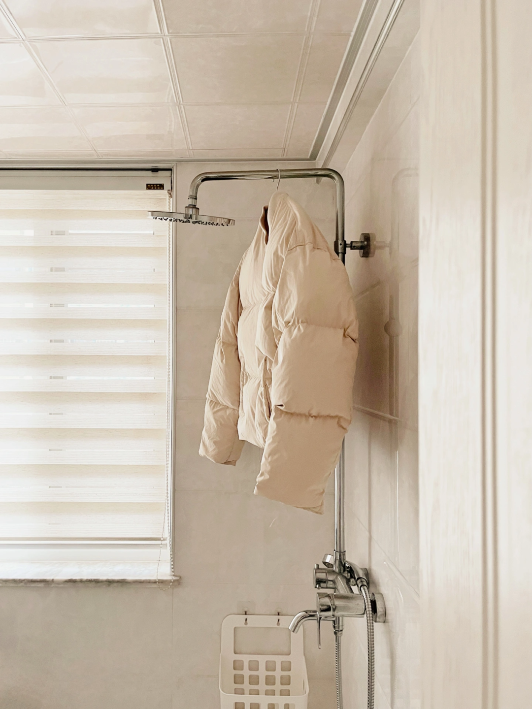 如果说,穿了一个冬天要收纳起来了,我会选择性机洗一次,洗衣机选择羽绒档,进行正常清洗,重点是洗后把羽绒服拉链拉好挂起来,一边用吹风机向衣服里吹鼓,一边用衣架拍打(袖子也一样处理),羽绒服才能恢复蓬松喔~