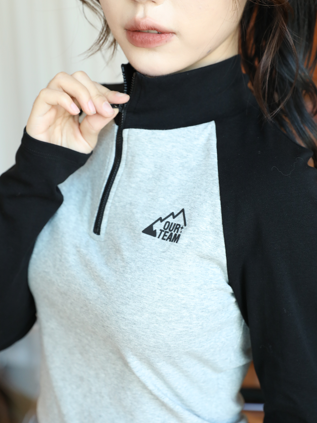 高领撞色T恤的小设计很多,蛮适合梨型身材的姐妹玩小心机,穿上立马直角肩~下面是黑色低腰短裙,腰间还有一个小腰带点缀,这样一套小心机运动休闲look,显高显瘦so easy!