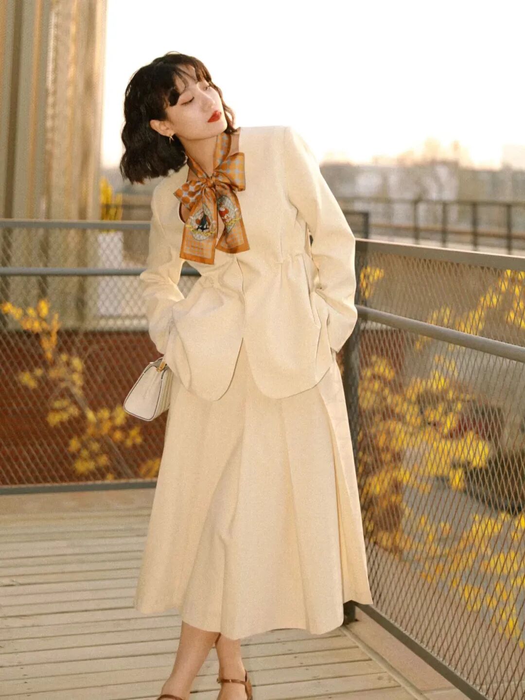 无论是裙装还是搭配的外套,要记得保持整套Look有轻有重,看起来才不会失衡。