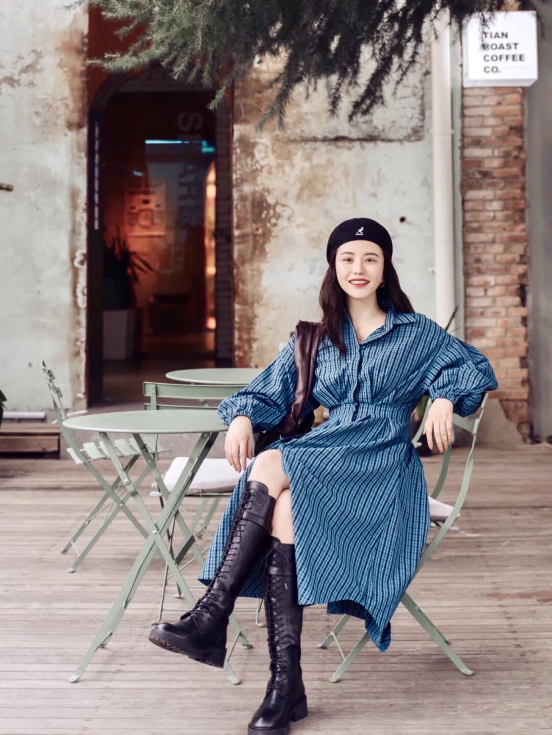 所以,我们干脆把靴子当成打底裤的作用,选择合腿的靴筒,就不会显拖沓。