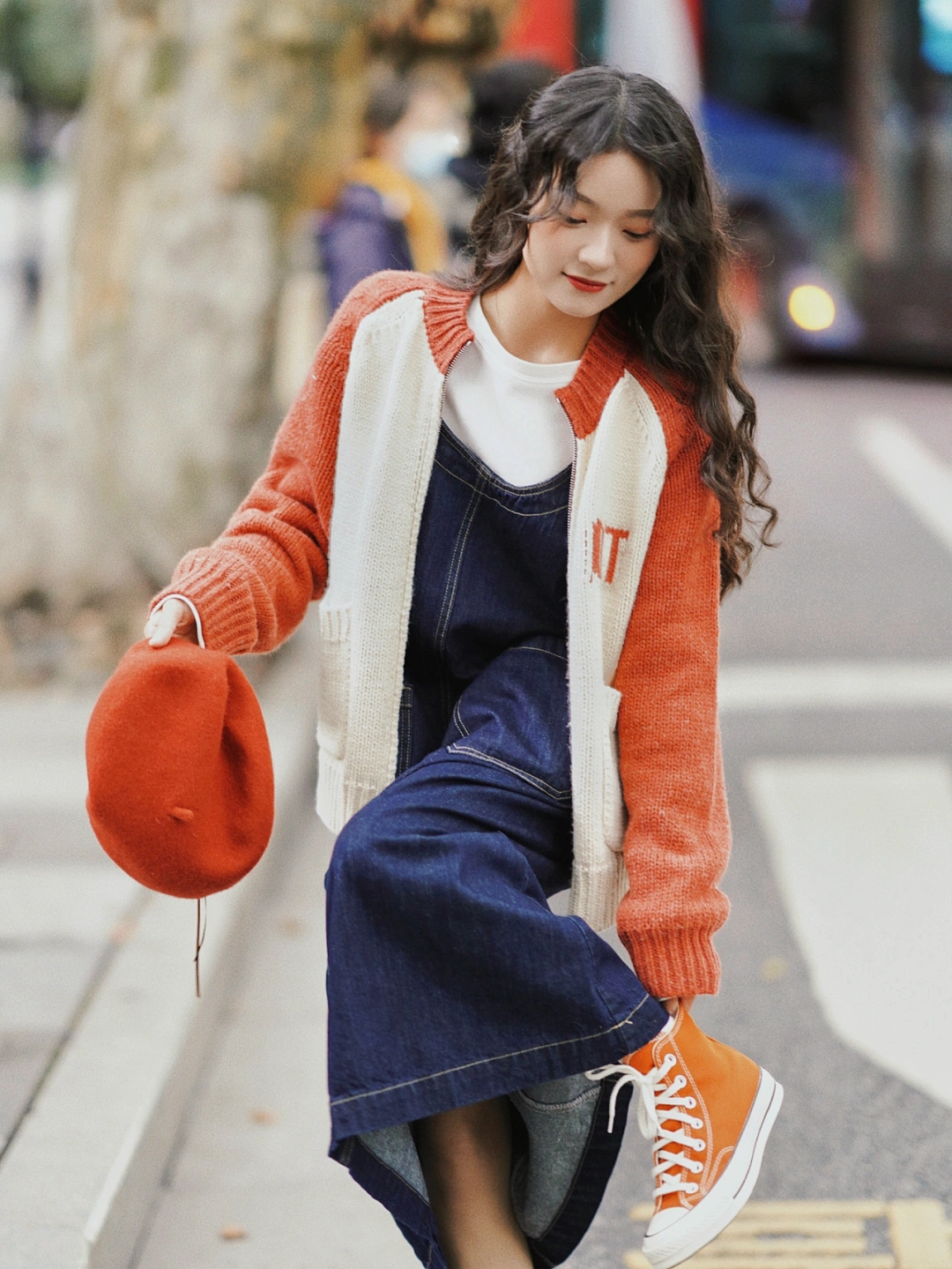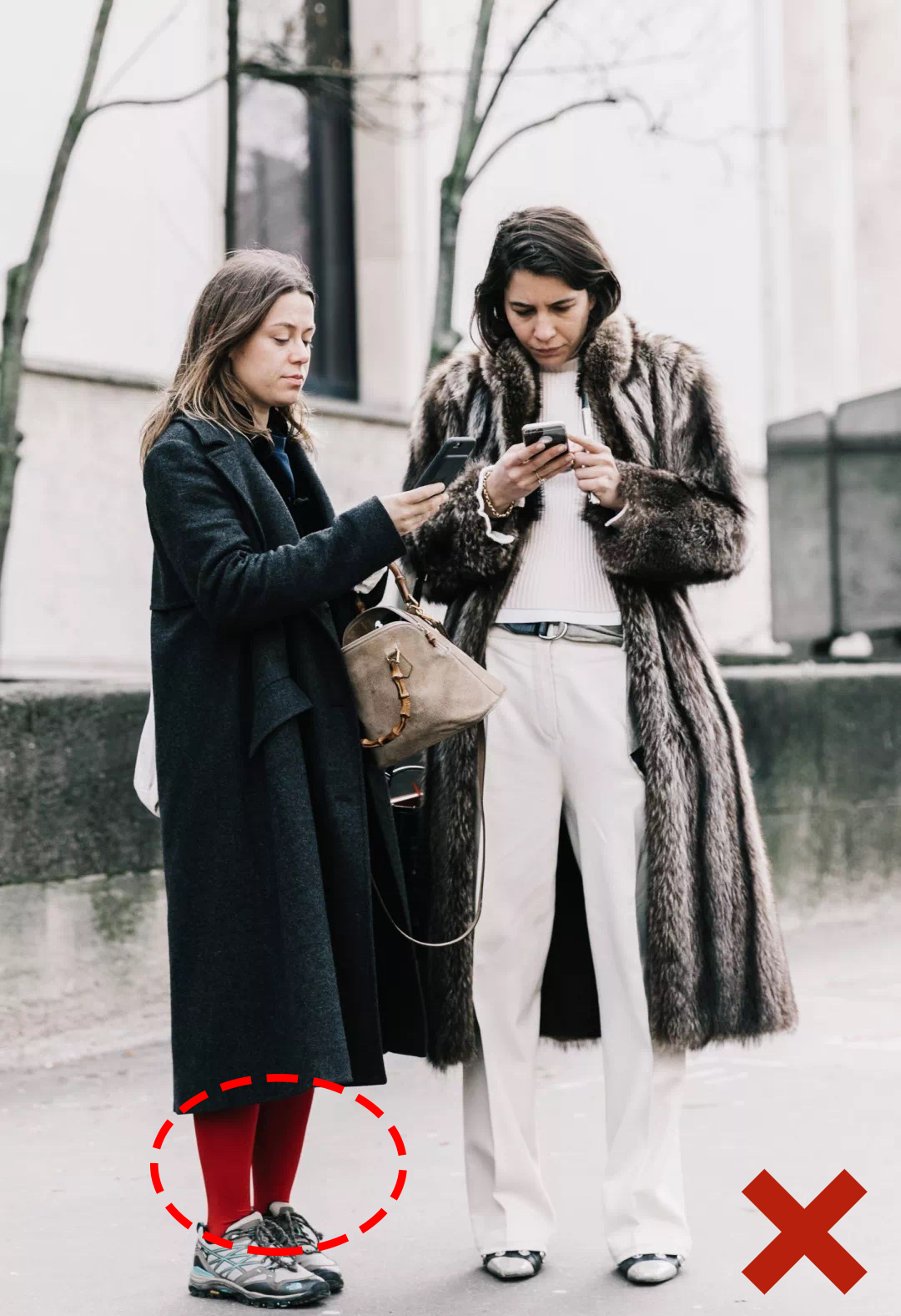“重”+“重”就很容易用力过猛,像粗棒毛线本身就很重,再去搭配毛呢裙装,厚重的靴子,就像是一根圆柱。